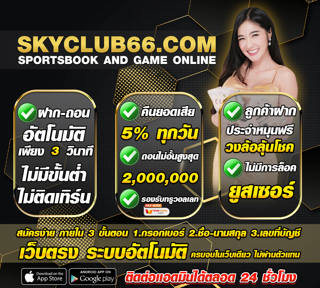หากคุณกำลังมองหาเว็บพนันออนไลน์ที่มั่นคงและได้มาตราฐานปลอดภัย ฝาก-ถอน ออโต้ทำรายการไม่เกิน3วินาทีและมีการจ่ายค่าน้ำดีที่สุดในตอนนี้ต้องที่นี้ เว็บตรงลิขสิทธิ์แท้ Skyclub66 รองรับทุกระบบธนาคารและมีครบวงจรของการเดิมพันออนไลน์